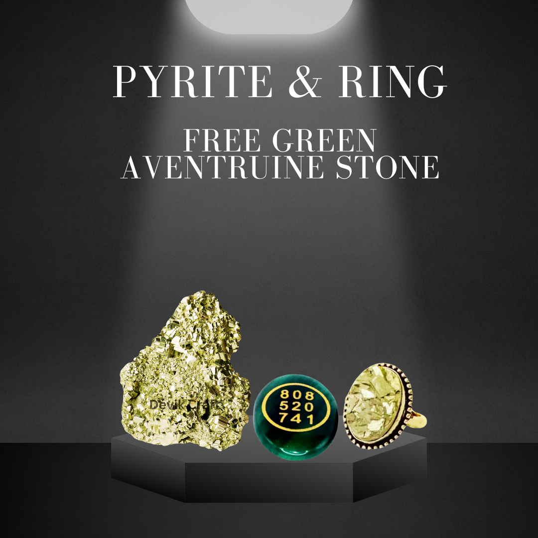Pyrite Stone Adjustable Ring with Free Green Aventurine Stone - Manifest Your Style and Luck!